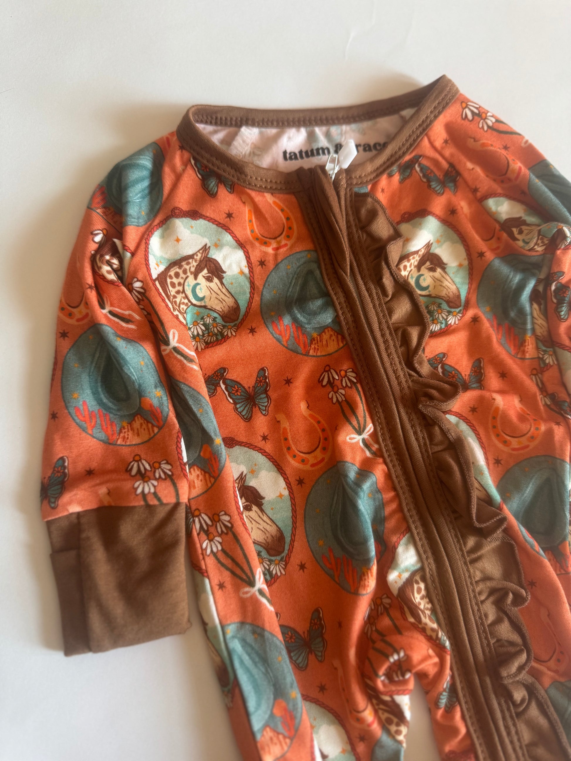 Saddle up for sweet dreams or adventurous days with the Bamboo Zipper Romper!